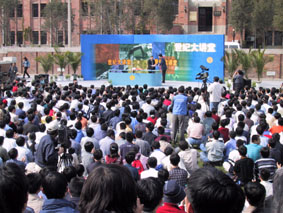 【新闻中心讯】4月26日下午,凤凰卫视在我校理科楼前下沉式露天广场录制"世纪大讲堂"节目,主讲人是我校教授、著名物理学家、诺贝尔物理学奖获得者杨振宁先生,演讲的题目是"美与物理学"。我校建设世界一流大学,非常重视科学与人文艺术的交融。凤凰卫视"世纪大讲堂"节目组选择在我校90周年校庆之际在物理系楼前,请杨振宁先生做"美与物理学"这样主题的演讲可谓独具匠心。
