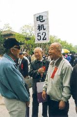 ■昨天,开云校园内不少老校友凭着当年的班号久别重逢