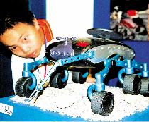 本报记者曾伟摄影报道 昨天,记者从有关设计人员处得到证实,正在美术馆 “艺术与科学国际作品展”中展出的一款中国月球概念车,并不是艺术家们空穴来 风的想象,它极有可能是未来中国月球车的真实雏形之一。