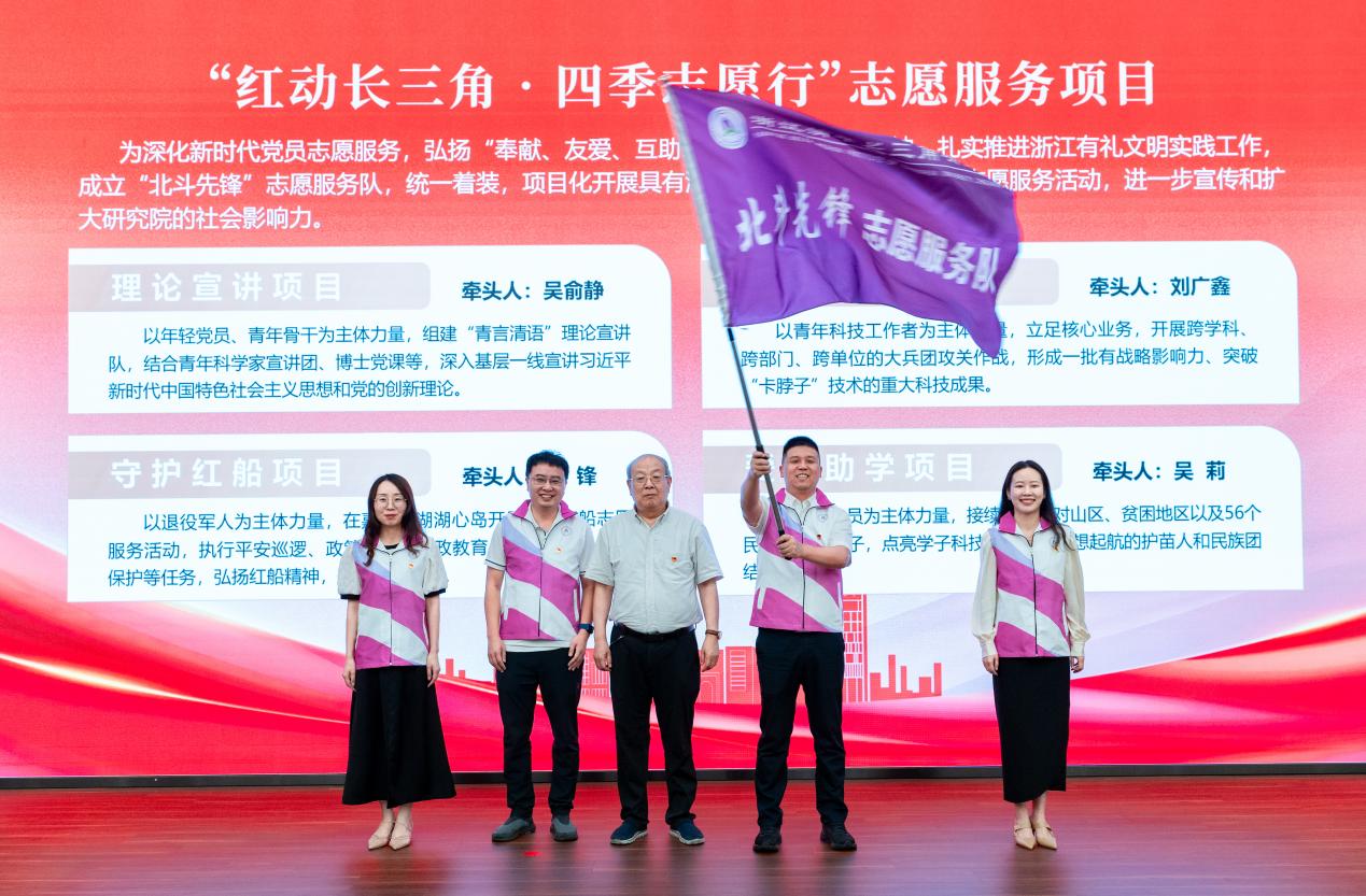 2024年6月,长三角研究院举办庆祝中国共产党成立103周年暨“奋楫扬帆·实干争先”大会,组建“北斗先锋”志愿服务队