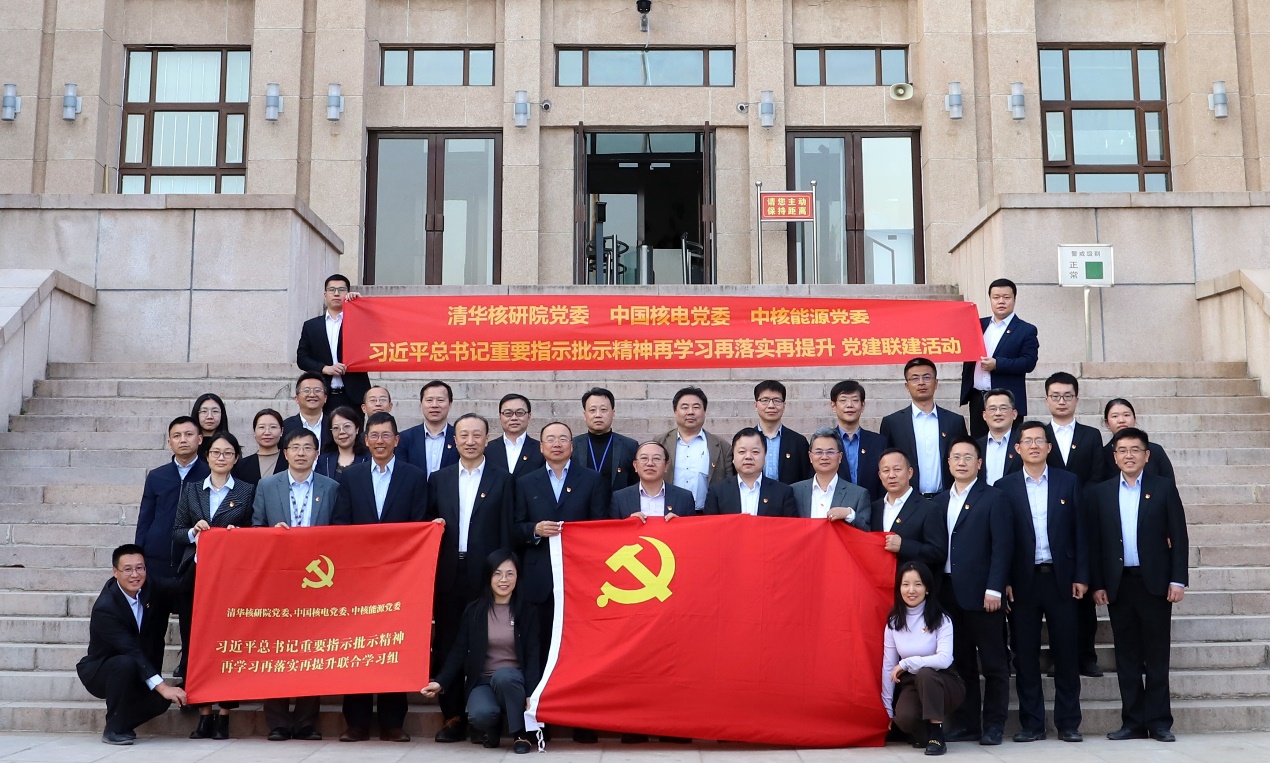 张国华带领与会同志共同学习了习近平总书记关于科技创新与制度创新“双轮驱动”的重要讲话精神,总结了与核研院长期紧密合作推动高温气冷堆重大专项科技攻关和产业化工作的历程与取得的成绩,特别是在“党建促专项”引领下大力推动体制机制创新的成果和经验,提出并介绍了以“党建促产业链”为载体深化后续联合党建工作的构想。