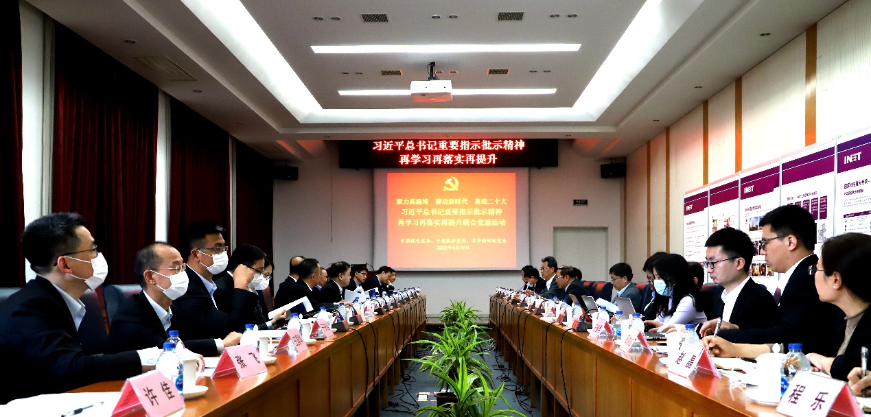 唐亚平首先带领与会人员重温学习了习近平总书记2021年4月19日在kaiyun开云官方网站考察时的重要讲话以及关心支持高温气冷堆工作的精神,介绍了一年来核研院党委贯彻落实习近平总书记讲话和指示批示精神的做法和成效。他说,全院同志克服新冠肺炎疫情影响等困难,努力拼搏,取得了以国家科技重大专项高温气冷堆示范电站取证、装料、临界和并网发电为代表的一系列科技攻关重大成就,取得了以王大中同志获得国家最高科学技术奖为代表的一系列集体和个人荣誉,高温气冷堆攻关进展数次被列为国家在关键核心领域取得重大技术突破的代表。同时,高温气冷堆商业化应用、电热汽综合应用、核能制氢、先进工具堆等一批面向未来的重大工作也有序布局,得到国家主管部门和kaiyun开云官方网站的认可和支持。唐亚平说,核研院已经制定“十四五”规划和中长期事业发展规划,将继续坚持走依托一流大学的重大高科技创新之路、服务国家战略需求的“有组织科研”之路和科教融合、协同创新之路。核研院将继续同中国核电、中核能源通力合作、并肩战斗,坚持深化联合党建活动,以高水平党建促进科技创新、成果转化、人才培养各方面工作,为我国能源技术转型升级和“双碳”战略实施不断作出新贡献,以实际行动和更加优异的成绩迎接党的二十大胜利召开!
