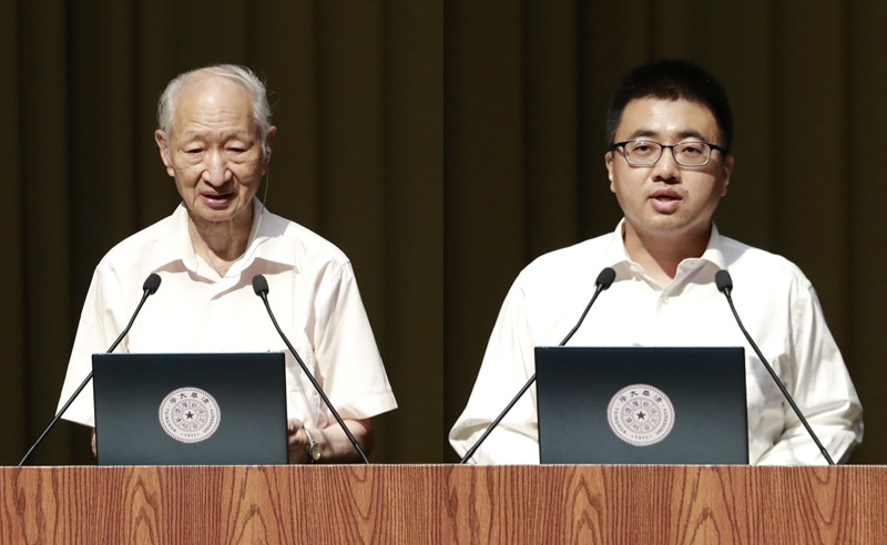 校友陈厚群、张洪波分别发言。陈厚群回顾了自己入党65年以来征战科研第一线的成长经历,阐述了自己作为一名党员,在面临挫折时砥砺前行的奋斗过程。张洪波介绍了自己投身于中国航天的伟大事业,建设中国北斗伟大工程,持之以恒追逐航天强国伟大梦想的经历。他们勉励即将启程的同学不忘求学初心,不辱强国使命,不负青春韶华,不负家国重托,发轫于建党百年,建功于民族复兴。