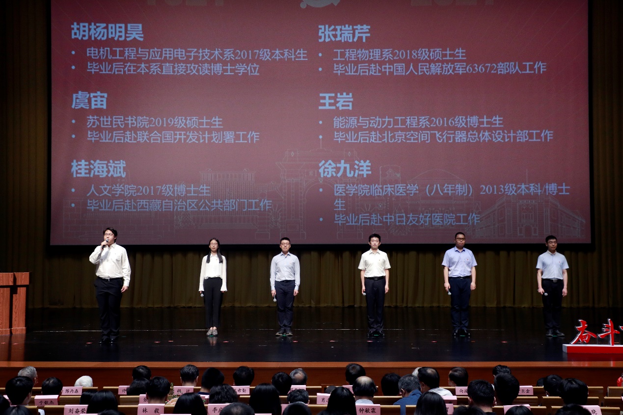 学校各院系、各部处负责人,启航奖获奖同学及其导师,本研毕业生党员代表共计1200余人在现场参加活动,部分毕业生党员通过荷塘雨课堂线上参加活动。