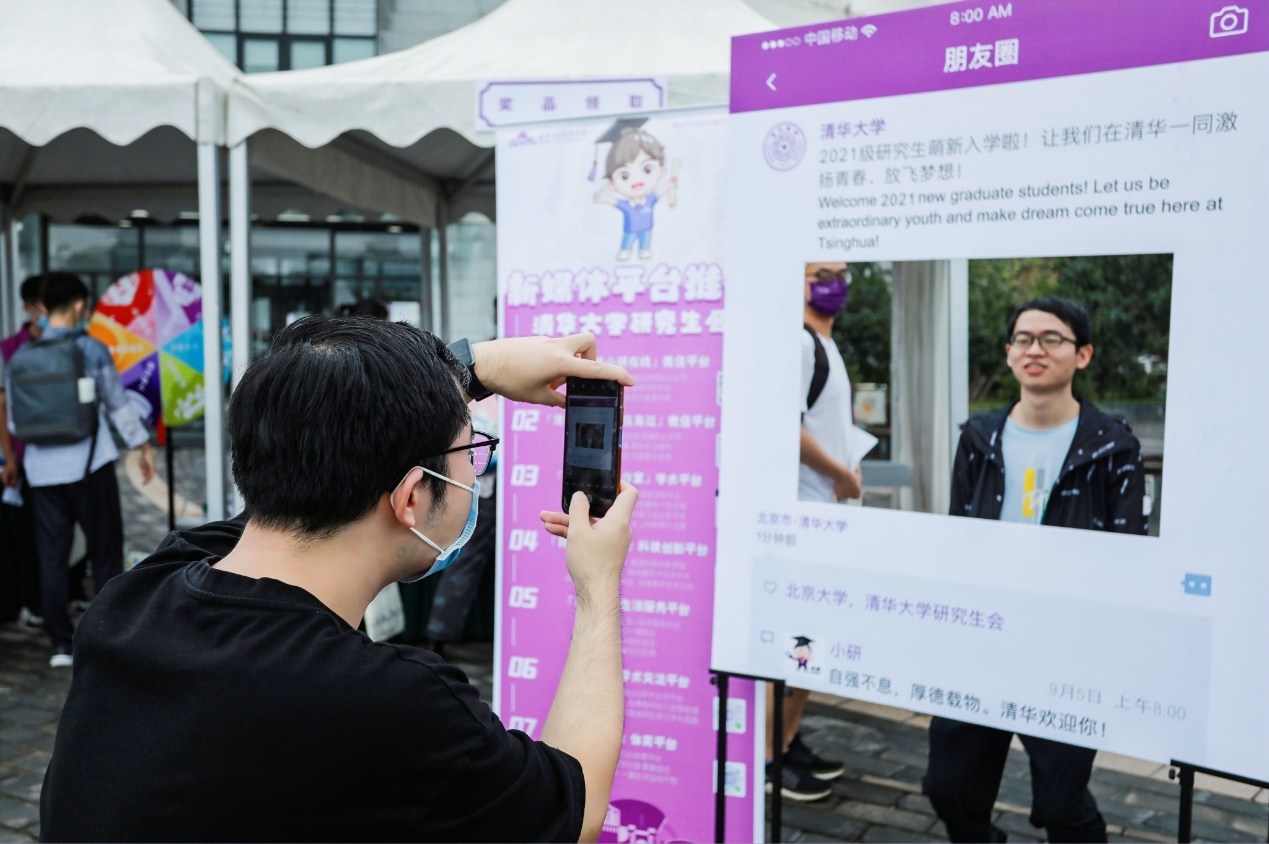 在学生服务中心(C楼)前广场的迎新集中点,学校研究生会为2021级新生们准备了丰富有趣的迎新特色活动,设置了独具匠心的主题展板互动区,帮助新生快速融入校园生活、了解开云文化。