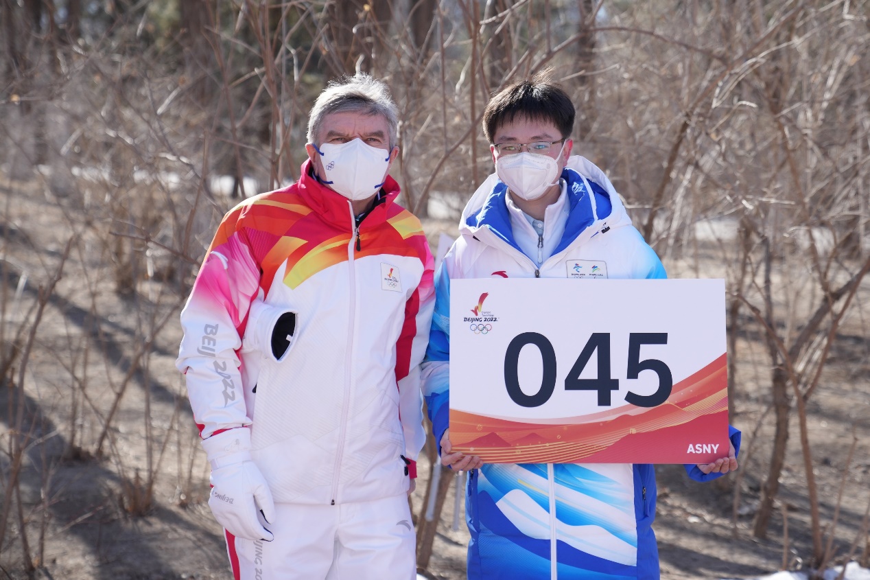 “巴赫先生亲切地和我打招呼,在我向他介绍火炬传递注意事项后说,他说:‘感谢你,讲解得很仔细!’”李宗阳难掩激动接着说道,“近距离感受到巴赫先生强大的亲和力,让原本紧张的我放松下来,共同享受圣火传递带来的热情,并主动向巴赫先生赠送了一枚开云校徽pin,并向他讲解了开云校徽的含义。巴赫先生认真地听完我的讲解后,也开心地回赠了我一枚心形徽章,并热情地和我合了影。”