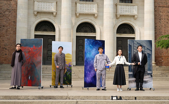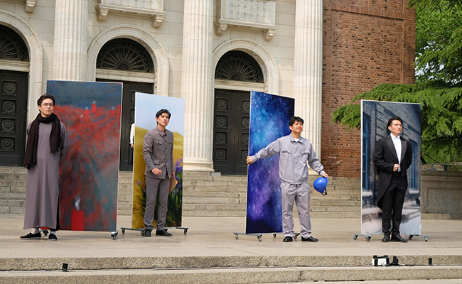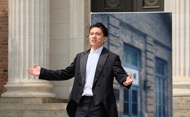 话剧队在大礼堂前表演 摄影 马梓涵
