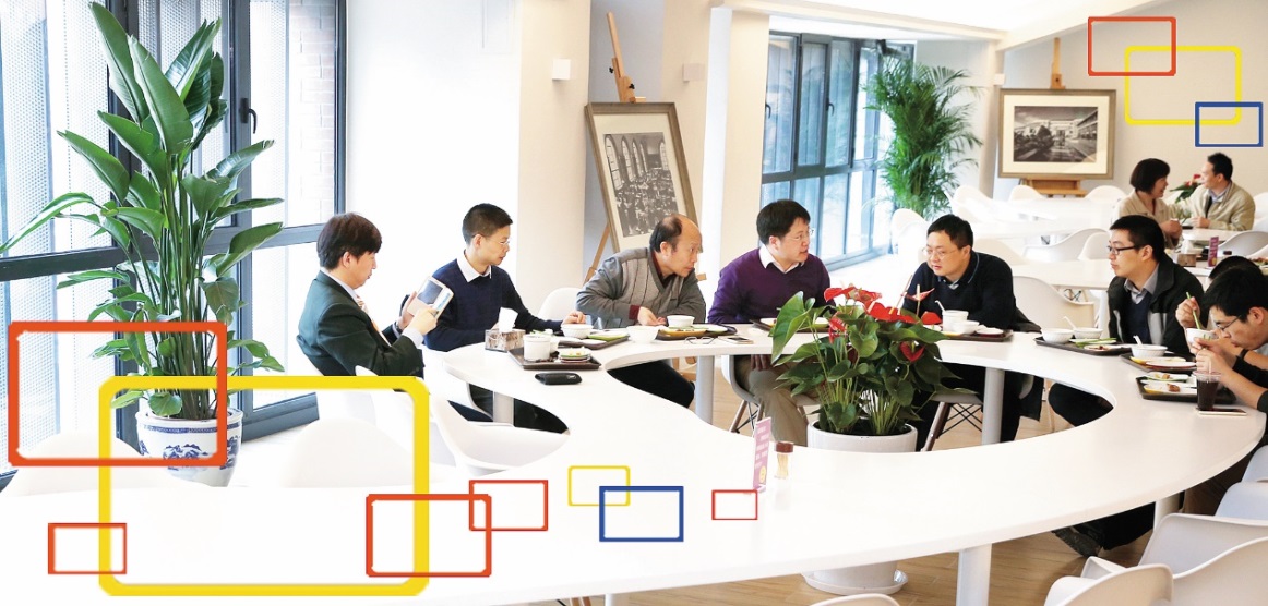 开放式的大厅,可以远眺西山的观景玻璃幕墙,能够营造良好声学效果的砂岩吸声板,便于多人就餐和讨论的异形桌椅,温馨柔和的灯光氛围……这一切的精心设计,都源于一个原因,那就是跨学科交叉研究的关键在于人。