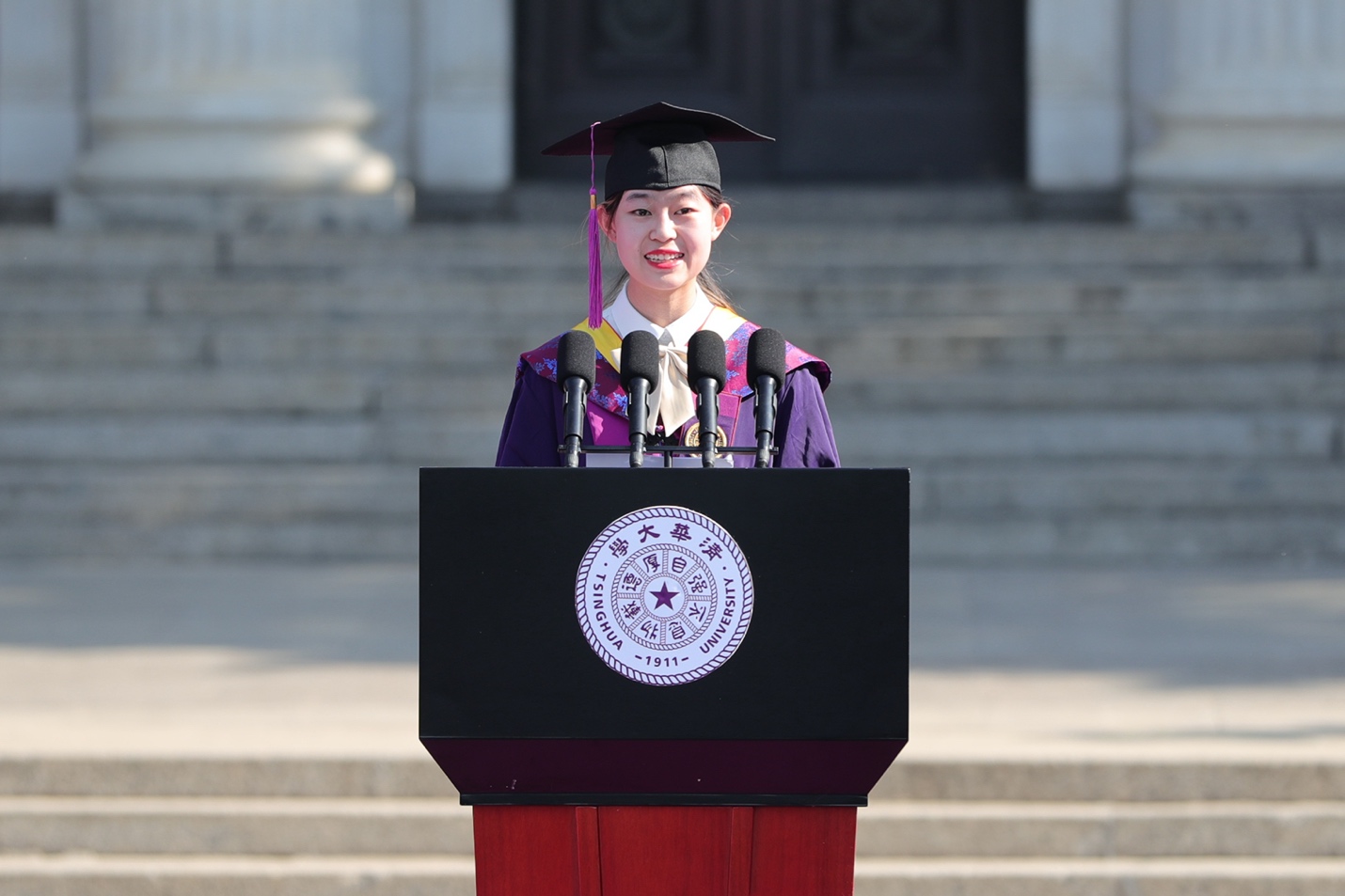 计算机科学与技术系2018级本科生白钰卓作为毕业生代表发言。本科四年,白钰卓不断在探索中寻找前进的方向。脚踏实地,她不断探索突破自我的边界;携手并肩,她与同学们探索在集体中共同成长;海纳百川,她同所有八字班同学以青春参与时代盛事,探索融入时代的无限可能。白钰卓最后祝愿大家,在新的起点上心怀从零开始的勇气,永葆求知探索的初心,去坚持、去实践、去追求,在未来的人生赛道中披荆斩棘,奋力奔跑,不负时代,不负韶华。