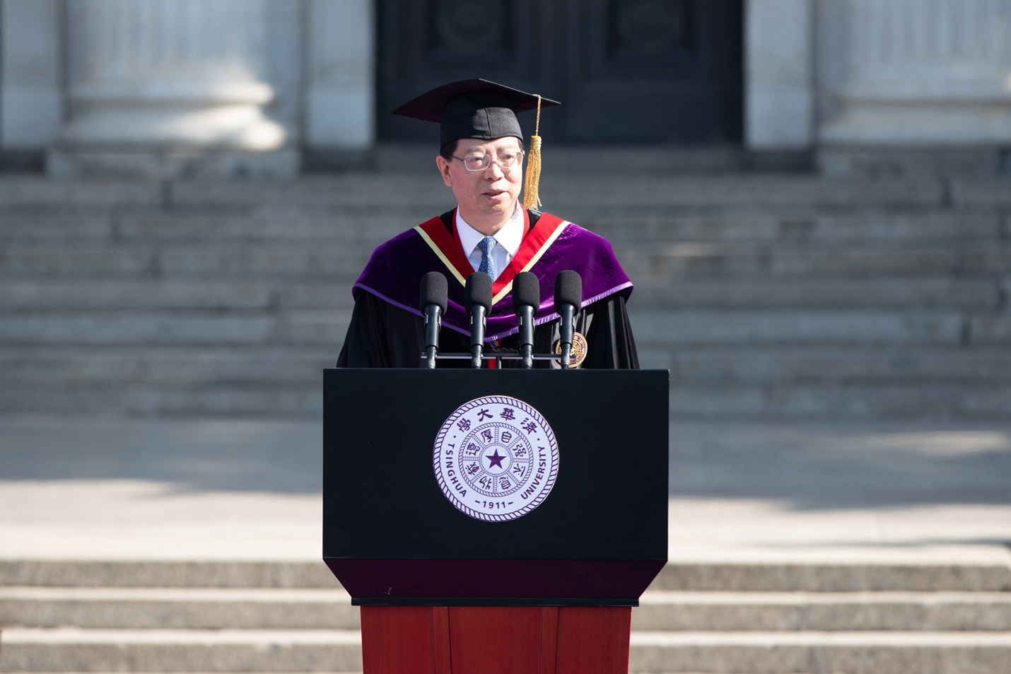 王希勤首先代表学校向顺利完成本科学业的同学们及其亲友表示热烈祝贺,向悉心培养同学们的老师致以衷心的感谢。王希勤回顾了他与八字班同学们一同在入学军训时进行雨中拉练、经受“风雨”考验的难忘经历。他说,四年以来,中国和世界也经历了很多风雨,发生了深刻而复杂的变化,全球性危机不断出现。回顾历史,我们会看到,风雨越大,越要坚定自信,坚持走好自己的路。