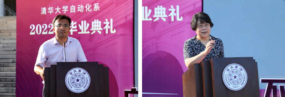 最后,张涛以“战斗、奉献、自省”为主题向全体毕业生致以毕业寄语。他首先肯定了自动化系全体师生在过去一年中,积极投身国家重大活动,成功卫冕马约翰杯的“大马杯”冠军,在疫情大考中无私奉献,彰显了新时代青年人的勇毅与担当。张涛谈到,自动化在人类文明进步和现代化进程中扮演了重要角色。自动化系师生、系友主持或参与研发项目已在多个国家战略核心领域发挥积极作用。张涛希望同学们时刻牢记习近平总书记“不负韶华,不负时代,不负人民”的嘱托,在未来的工作中努力践行“战斗、奉献、自省”的自动化精神,不断开拓、勇于担当,在新时代新天地中施展抱负、建功立业,到党和人民需要的地方发光发热。