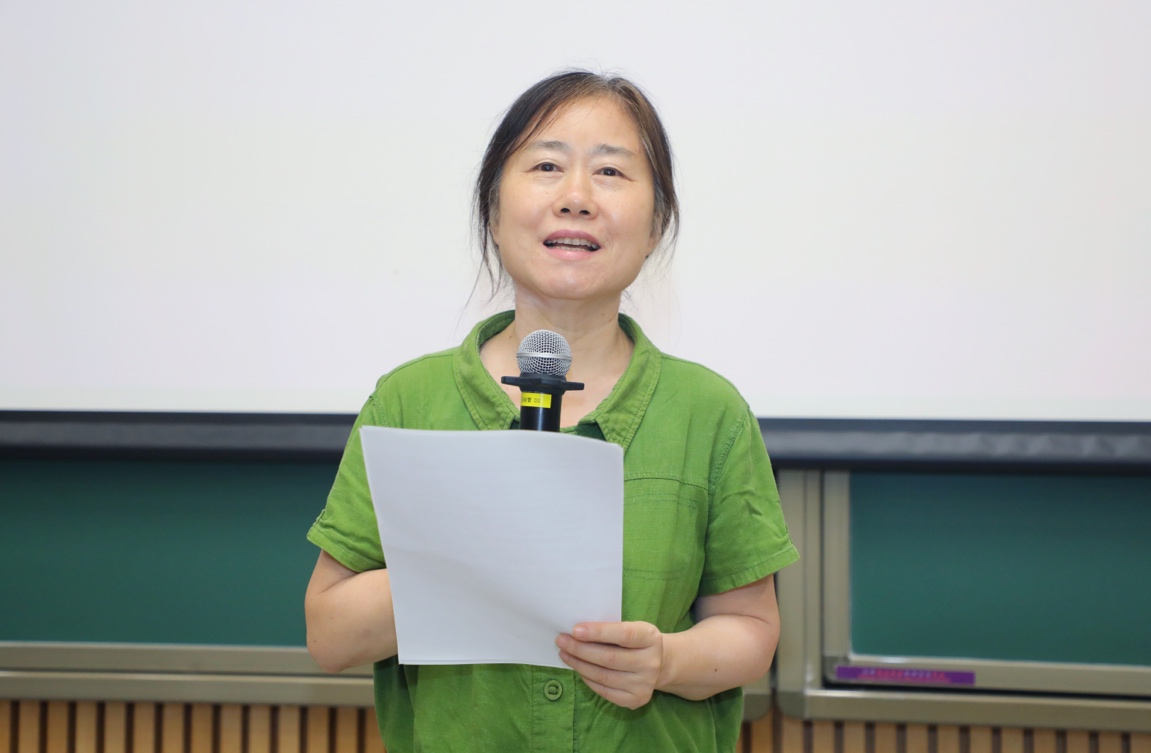 教师代表曹莉对本科生新同学表示热烈欢迎。她向同学们介绍了外文系的办学传统,勉励同学们深入了解外文系的发展历程,潜心学习和研究中外文化,切实推进人文交流、文化传播和文明对话,助力构建人类命运共同体。她希望同学们以最高标准要求和锻炼自己,不辜负祖国和人民的期望。