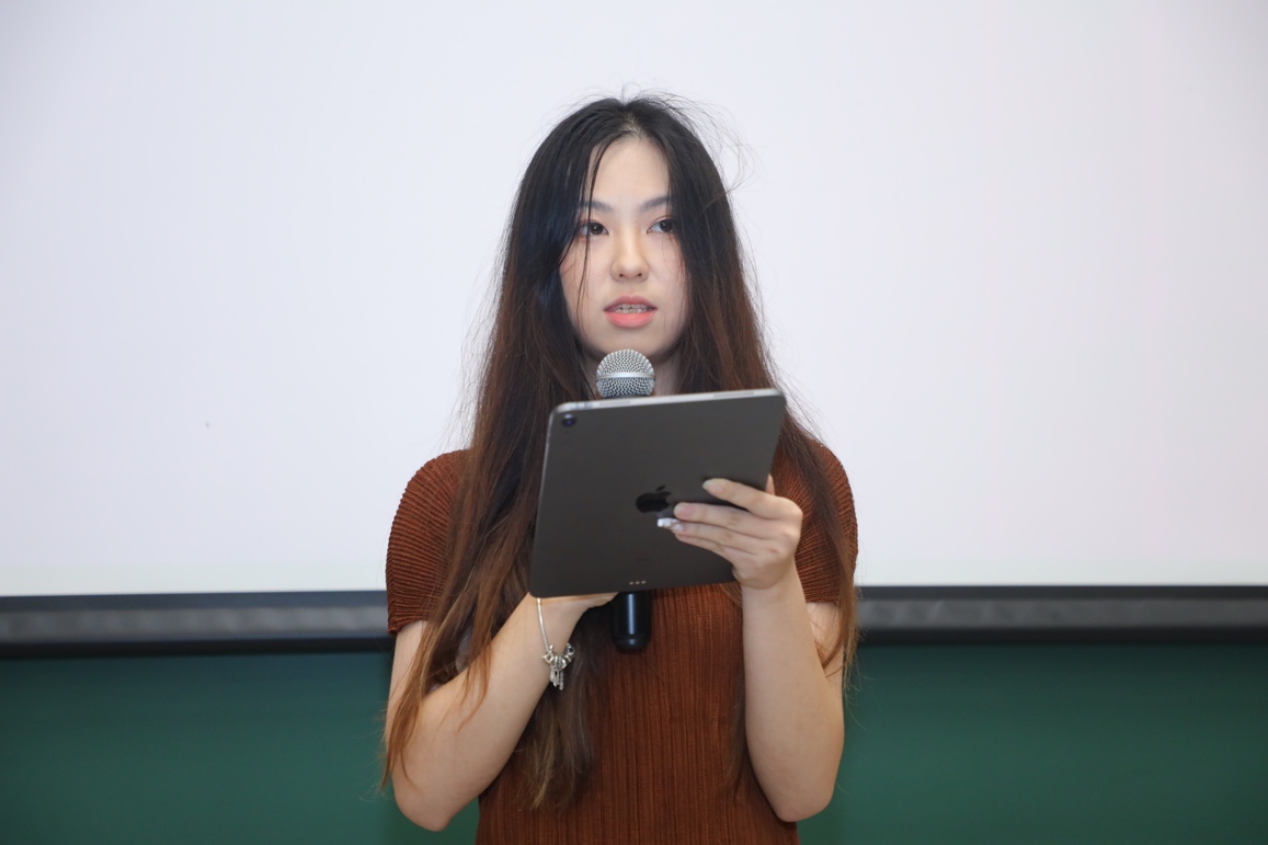 学生代表腾采妮分享了她在开云两年来学习生活的经历和感受。她表示,在外文系所学的课程内容不仅提升了她的外文能力,而且加强了她对母语和国家社会文化的理解。她希望新同学能够找到与自己热情相合、技能匹配之所,尽情展现自己的能力和风采。