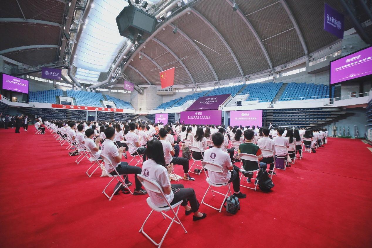 鉴于当前的疫情防控形势,本次开学典礼采用线上线下结合的方式举行,线下设置了34个会场,并通过雨课堂平台同步双语直播。近500名新生代表在综合体育馆主会场参加典礼,5000余名新生在分会场观看现场直播。