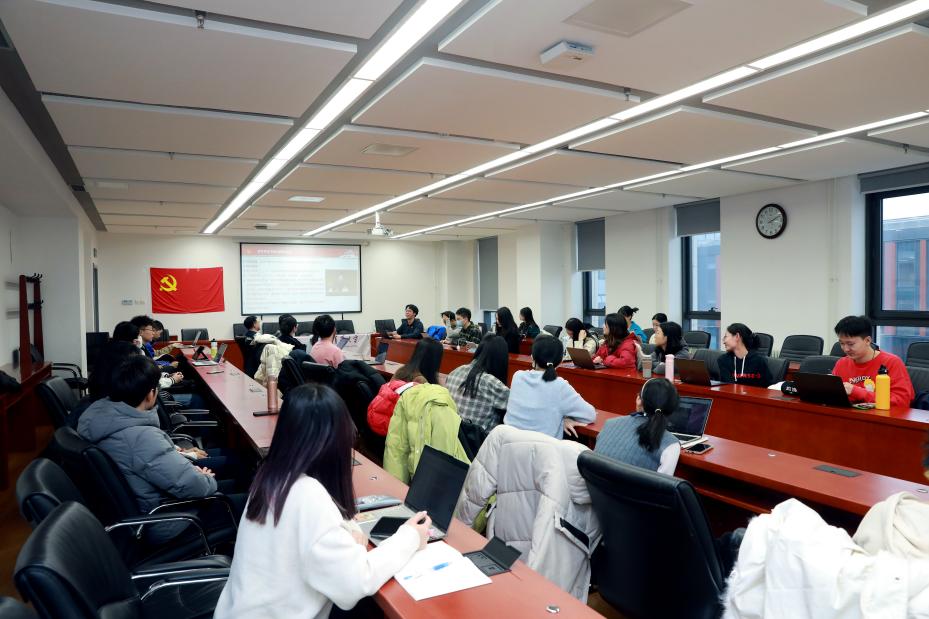10日上午集中学习结束后,社科学院3个教工党支部和14个学生党支部当天就“马不停蹄、趁热打铁”开展了集中讨论。此外,为落实全覆盖要求,社科学院党委安排了多场集中补学,以支部为单元一一落实每位党员的参会情况。12月14日,社科学院组织了第一次教职工和学生党员补学。大雪纷飞,明斋会议室内党员们的认真和热情却丝毫不减。学习结束后,党员们自发展开热烈讨论。社科硕231党支部党员何佩熹说,通过补学感受到了集中学习现场热烈浓厚的学习氛围,自己也将确保学习“不掉队”。社科学院党委还会继续组织两场补学,切实做到应学尽学、应补尽补。