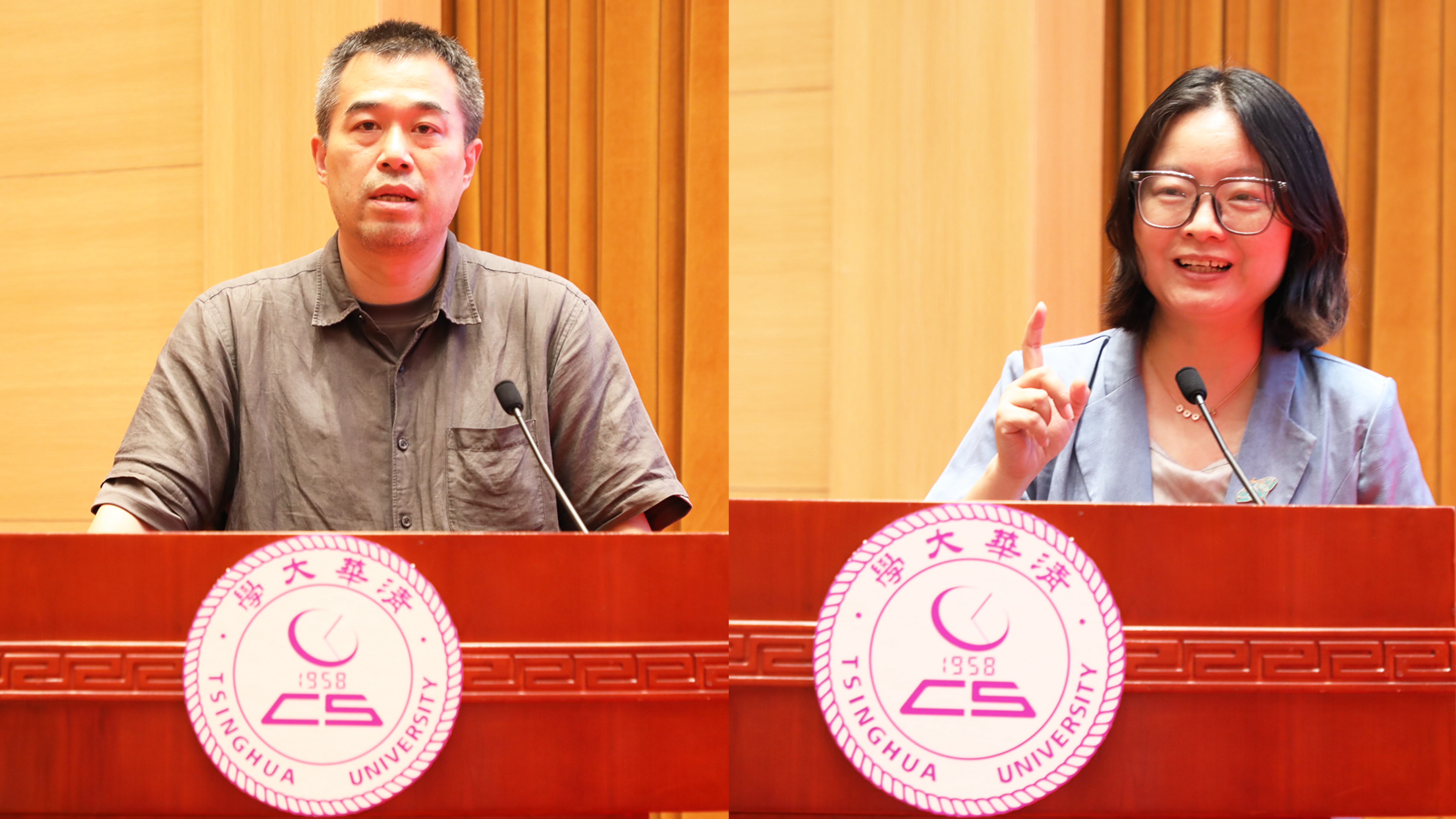 尹霞(左)讲话;贾珈(右)主持