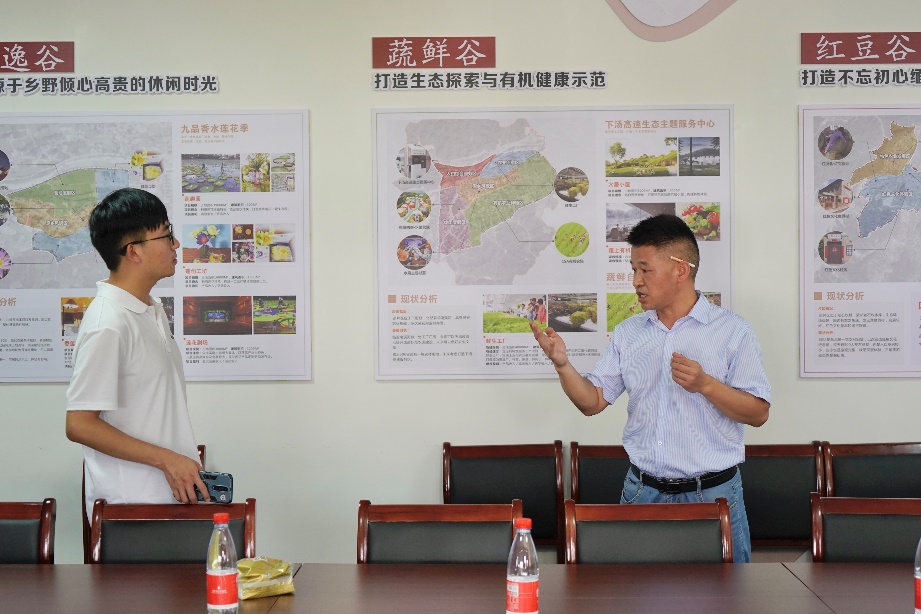 驻村干部向支队成员介绍当地结合生态建设开发的特色旅游项目
