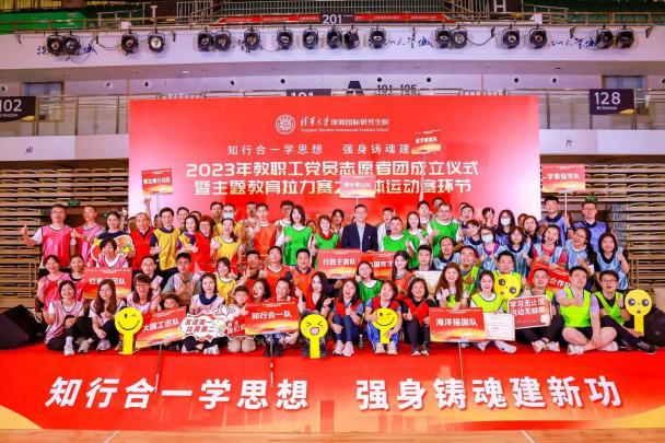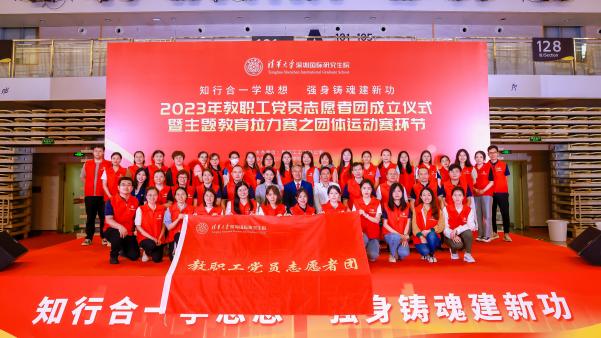 拉力赛举办期间,还时不时闪现着一群身着红马甲的身影,他们就是学院教职工党员志愿者团的60余名志愿者。无论是赛场上,还是答题处,他们默默奉献,撑起一片万里晴空。在团体运动赛环节开始之前,还举行了深圳国际研究生院教职工党员志愿者团成立仪式,深圳国际研究生院党委书记武晓峰致辞,深圳国际研究生院材料研究院副院长、志愿者团团长李宝华代表志愿者发言,共青团深圳市委员会社区和志愿者部部长边郭晓晴向教职工党员志愿者团授旗。