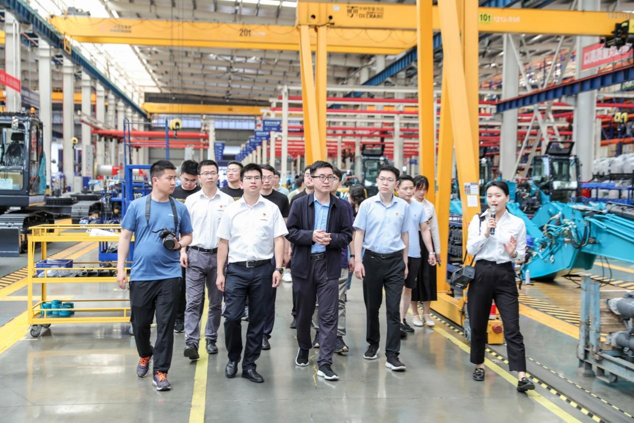 在山河智能装备股份有限公司的生产车间,实践调研团了解技术研发、生产制造情况,重温习近平总书记“关键核心技术必须牢牢掌握在我们自己手中,制造业也一定要抓在我们自己手里”的重要论述。