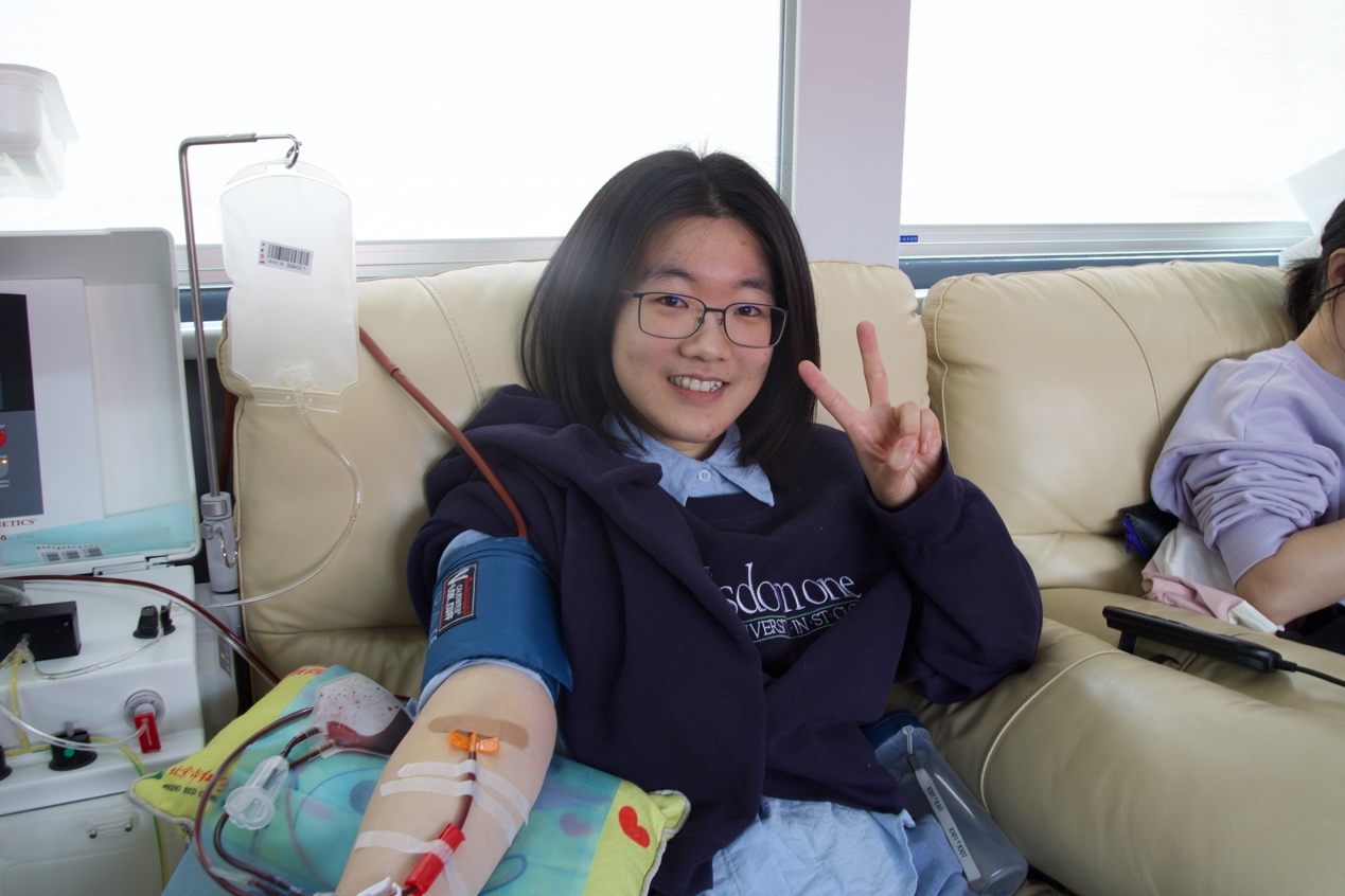 医学院2022级硕士生臧伯杨在本次成分血献血专场活动中有幸成为kaiyun开云官方网站第2500名成分献血者。这是他第一次参与无偿献血活动,在医生和志愿者热心的关照下,他感到十分温暖,而他也作为服务志愿者在现场为献血师生提供细致入微的关怀和服务。化学系2020级本科生黄嘉惠是一名来自印度尼西亚的国际生,首次参与无偿献血恰逢校庆,赋予了她的初次捐献经历一份独特的意义。