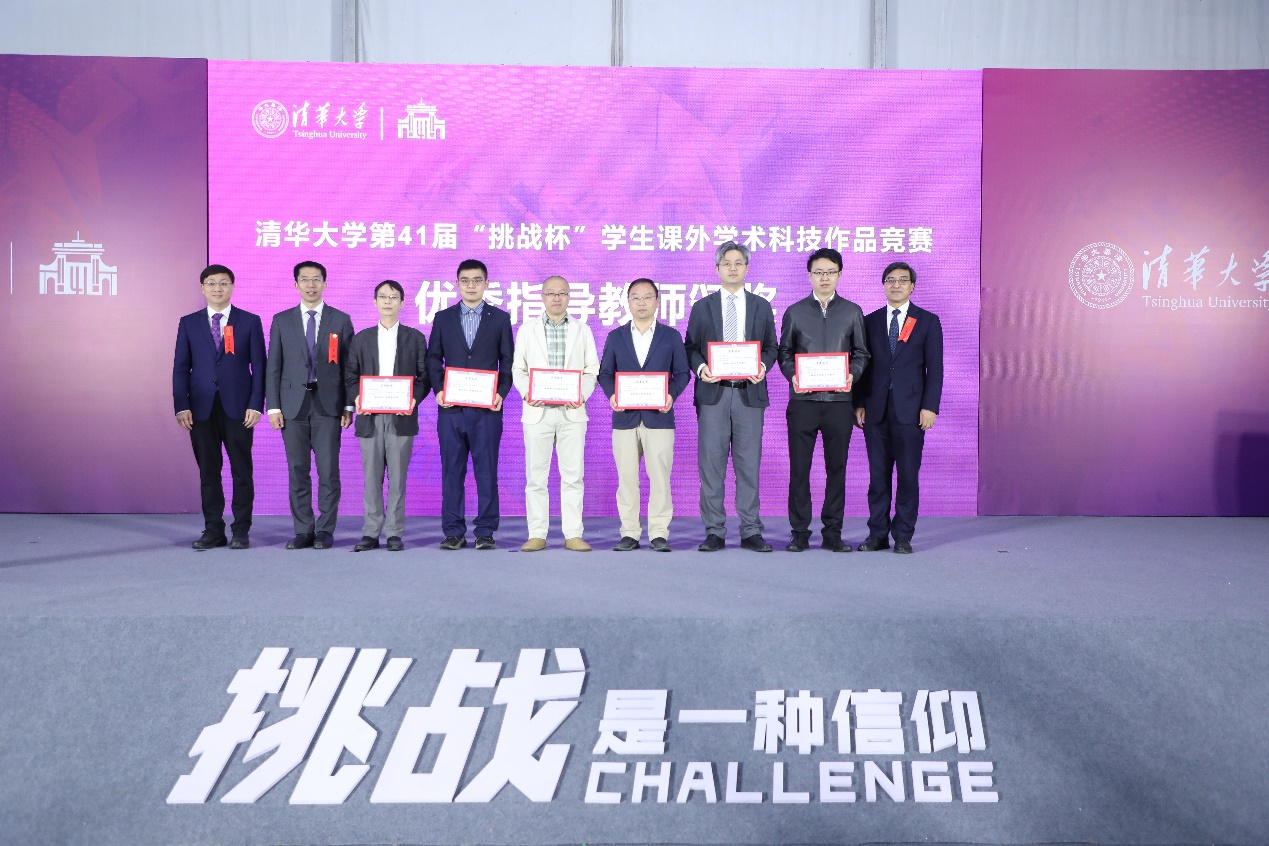 曾嵘(左二)、姜培学(右一)和许庆红(左一)为获得“优秀指导教师”的教师颁奖