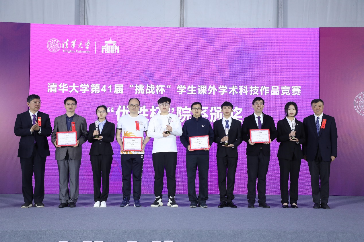 校党委书记邱勇、校长王希勤共同为获得本届竞赛“挑战杯”的院系颁奖。副校长杨斌、郑力,校党委副书记向波涛、赵罡,副校长彭刚为获得本届竞赛“优胜杯”的院系颁奖。副校长曾嵘、姜培学,校党委副书记许庆红为本届“挑战杯”竞赛优秀指导教师颁奖。副校长王宏伟、李路明与阚宝奎为获得本届“挑战杯”竞赛特等奖作品的同学颁奖。校党委副书记过勇宣读了获奖名单。