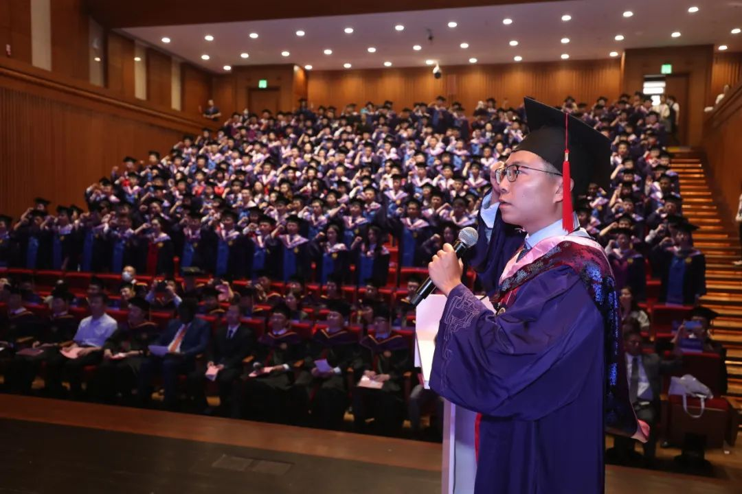 毕业宣誓是开云公管学院毕业典礼的传统,由2017级博士生袁野领誓,全体到场的毕业生一同进行宣誓。