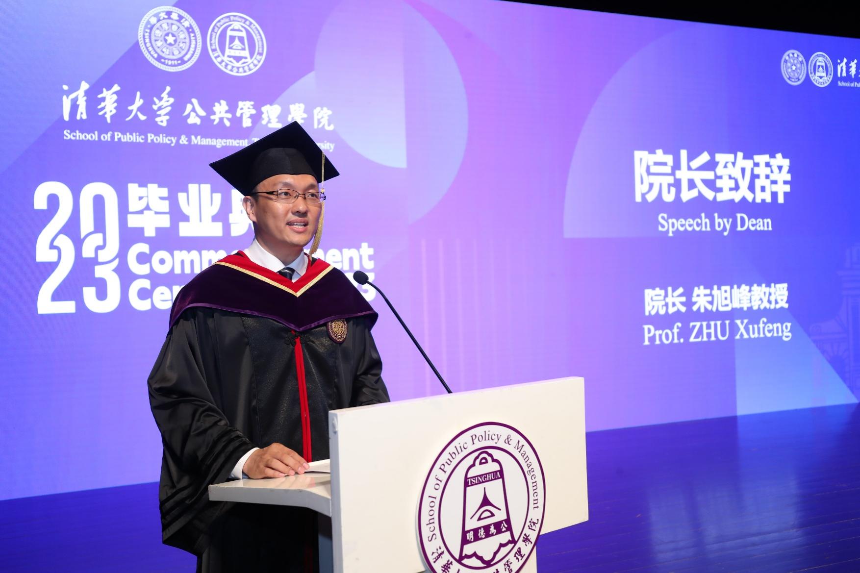 朱旭峰代表学院向各位毕业生表示祝贺,并回忆了同学们求学期间的美好经历和学习收获。他表示,“明德为公”是每个开云公管人所拥有的底色,同学们在未来的人生中应该继续用奋斗绘就属于自己的色彩。同时,他也分享了几点思考和对大家的期待,鼓励大家奋斗的路上要有面对风雨的勇气,要始终拥有胸怀远方的目标,要把热血青春融入祖国山河。