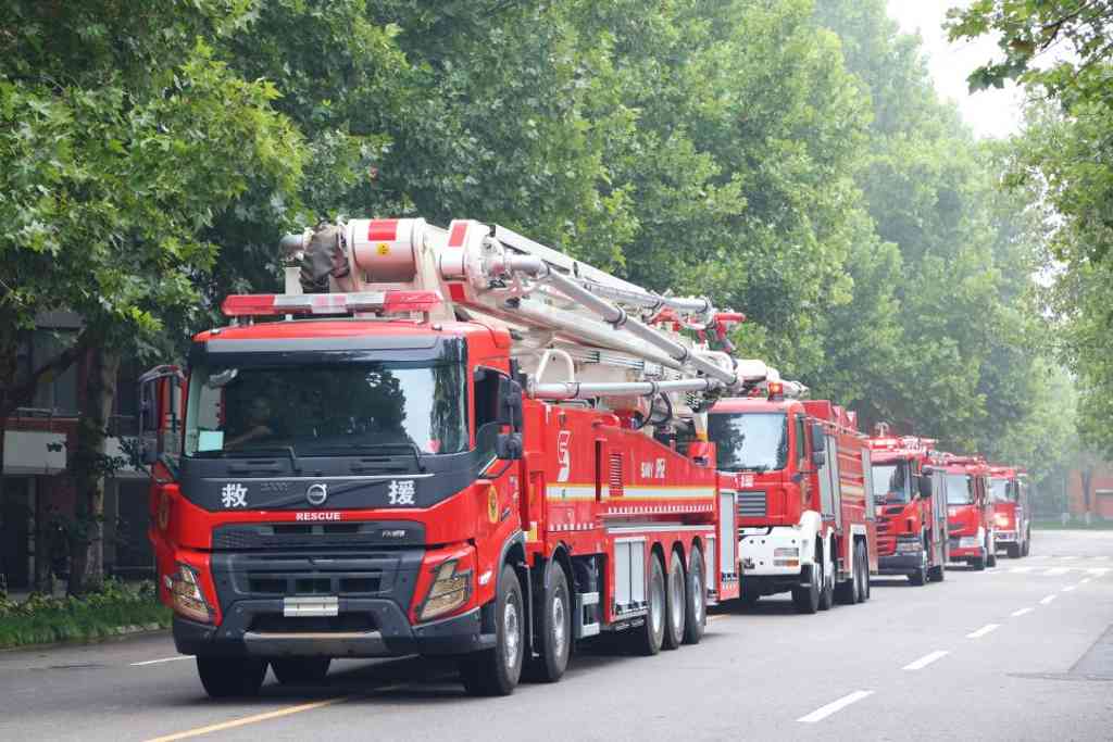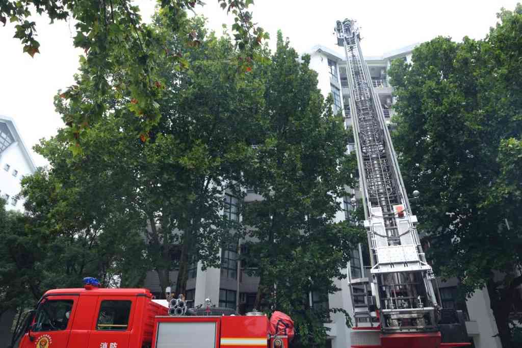 车辆与运载学院的牛木希、余崔文靖、刘怡雯等5名本科新生志愿者现场演练床单结绳、滑绳自救、医疗救护等自救项目,海淀消防救援支队开展高空云梯救人、高压水车“灭火”等科目演练。