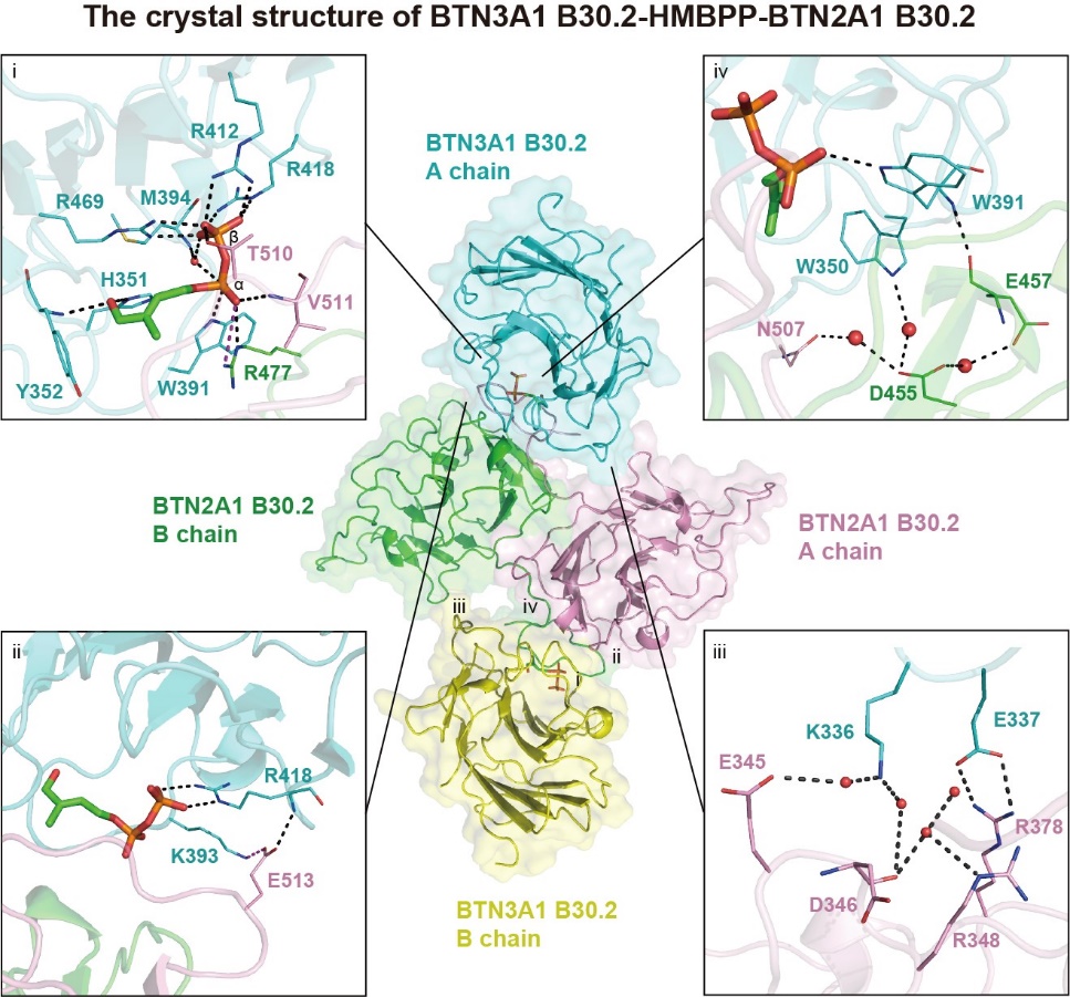 上世纪90年代,科学家发现,肿瘤或病原体细胞能产生膦抗原,从而激发γδ T细胞的免疫。那么T细胞是如何感知到膦抗原的呢?2010年前后,跨膜蛋白BTN3A1进入学界视野;2019年,当时还在张永辉团队攻读博士学位的杨云云通过结构生物学实验证实,膦抗原通过与靶细胞(即被免疫系统视为外来或异常的细胞)上跨膜蛋白BTN3A1胞内段的结合来启动T细胞。