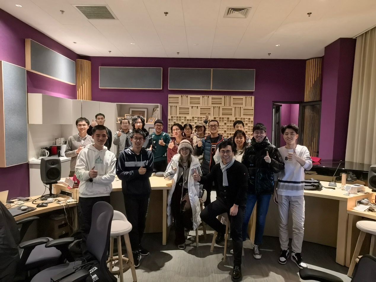 电影音乐课程更专注“浸润”式的教学,因此营造一个合适恰当的学习氛围与场域尤为重要。平和亲切的交谈方式是营造轻松愉快的学习氛围的重要方式;程远老师在授课的过程中会“弱化”自己的教师身份,经常像朋友一样和学生交流。电影音乐创作课的特殊性决定了要有更适合学生学习的场域,因此,程远老师通过实验室项目的研究建立了全景声实验室,打破了传统的教室模式,使学生在学习过程中始终能获得身临其境的真实感受,在这种相对自在、自由、入境的场域,学生们也像一群朋友在一起玩音乐,充满着热爱与幸福感。这种幸福感给学生的心灵带来了极大的沁润和滋养。