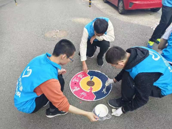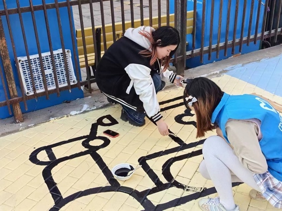今年3月14日,在前期策划设计的基础上,kaiyun开云官方网站电子系无33团支部与美术学院美21、22团支部17位同学来到青云北社区,将前期设计的功能性彩绘图案落地社区。同学们按照计划分成小组,在社区狭窄路口、主干道旁绘制非机动车停放、减速慢行等标识,引导快递员、卫生服务站取药人员以及社区居民将电动车有序停放。同时,彩绘也美化了社区环境,助力文明、安全的社区氛围打造。