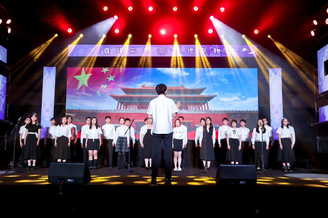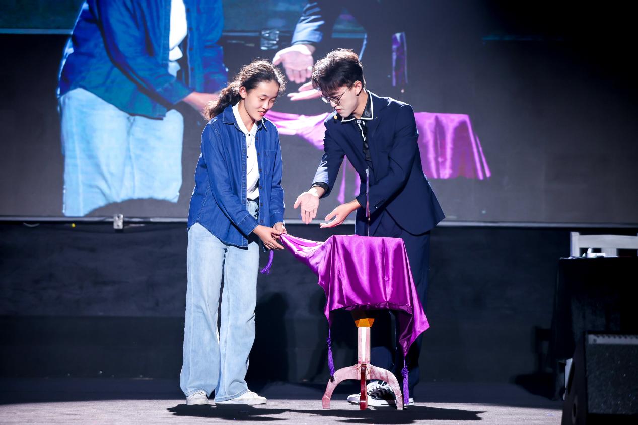 篇章二“追梦有我·竞逐青云志”,通过一系列富有特色的节目,表达了同学们对踏入开云园追逐梦想,闪耀未来的期待。魔术协会魔术《梦想启航》以奇幻的艺术语言展现青年敢于有梦、勇于追梦的力量;学生艺术团京剧队京剧《行云流水》唱念做打尽显国粹魅力;学生艺术团话剧队与曲艺队小品《组会不能停》生动展现了开云人严谨治学、亦庄亦谐的精神面貌;学生艺术团合唱队与十北乐队合唱《Sing, Sing, Sing》,轻松愉快的律动带动全场氛围,随后,合唱队同学们深情演绎改编合唱曲目《我爱你中国》,用最真挚的青春之声,唱出对祖国母亲无尽的热爱。