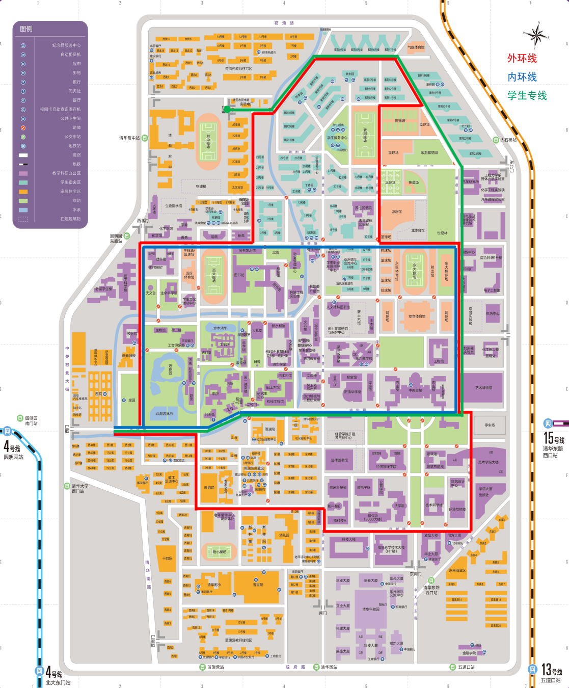 3)运行模式:固定线路行驶,固定站点停靠。每小时的10分、40分驶往东侧门方向(顺时针方向),25分、55分驶往东北门方向(逆时针方向)。