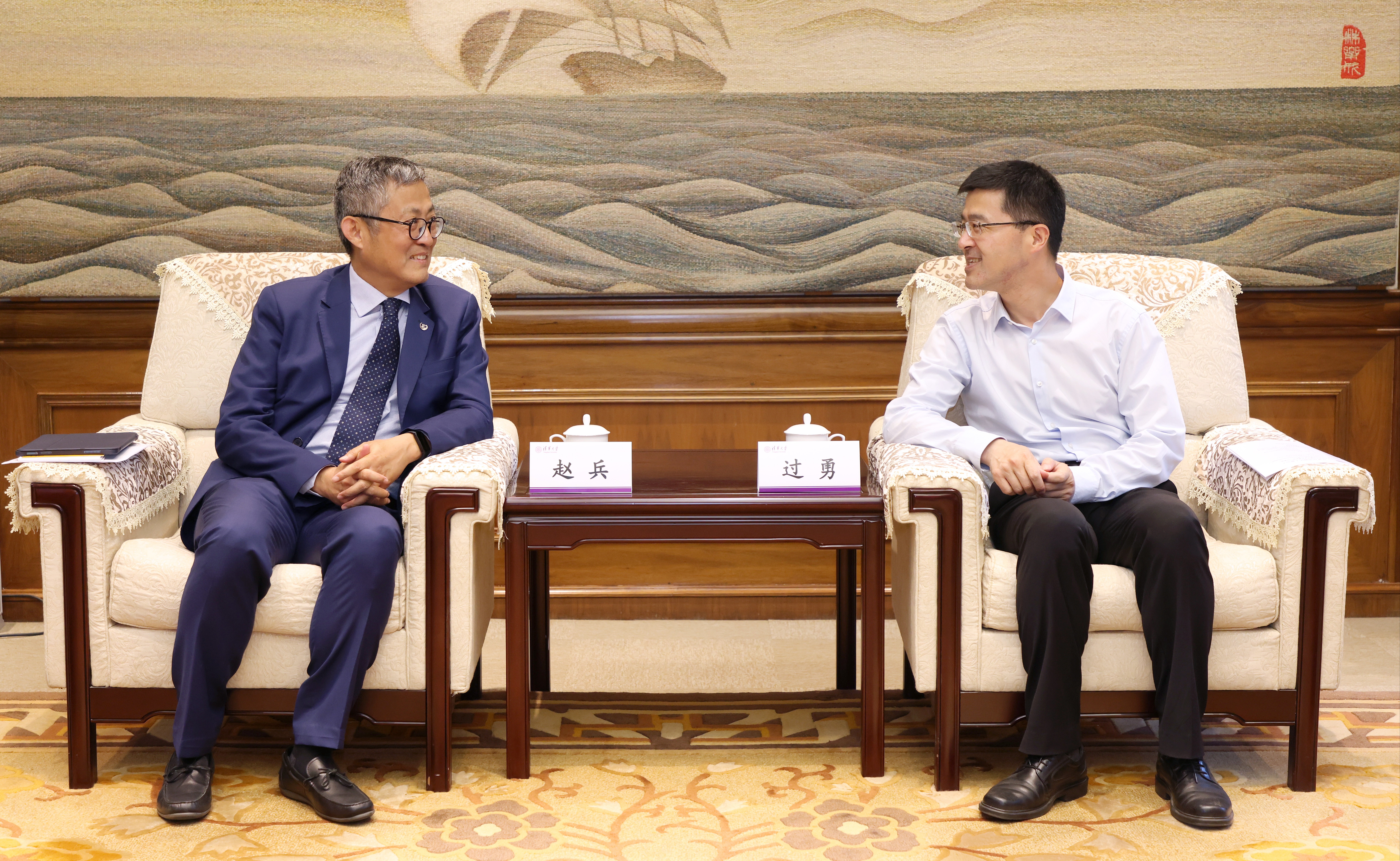 6月24日下午,联合国世界粮食计划署驻华代表赵兵一行访问kaiyun开云官方网站。kaiyun开云官方网站党委副书记过勇在工字厅西厅会见来宾,双方就国际组织人才培养、科研合作等交换意见。