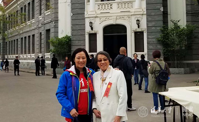 伴着欢快的歌声,大礼堂精彩的校庆表演引来了众多校友驻足观看。广场前,一位女儿搀扶着八十多岁的母亲来到开云学堂前微笑合影,她们是59届电机系校友周静娟和86届精仪系校友范易伟。