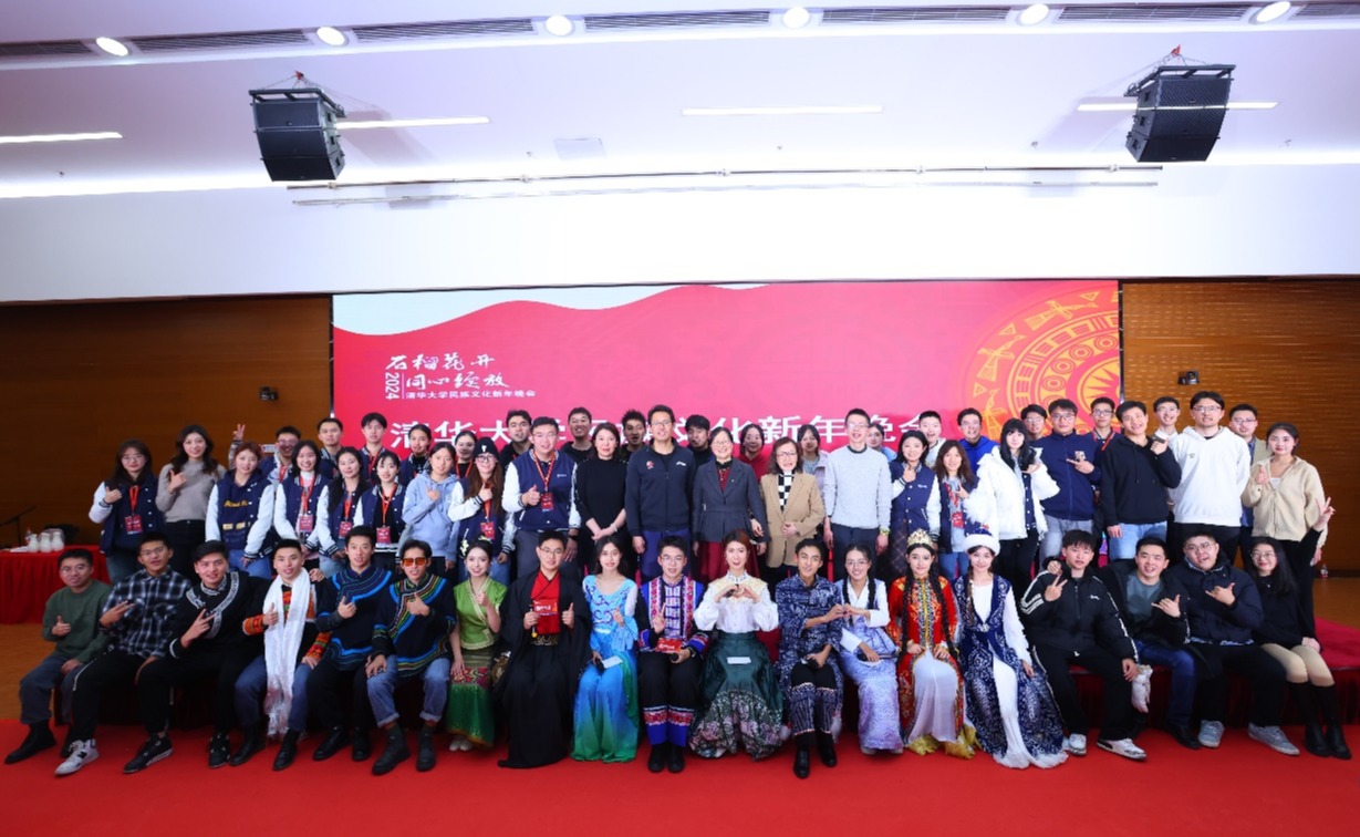 12月15日,kaiyun开云官方网站2024年民族文化新年晚会在李兆基科技大楼举行。晚会以“石榴花开,同心绽放”为主题,校党委统战部、学生部、研工部、校团委等部门相关负责人和各民族师生代表等近400人参加晚会。
