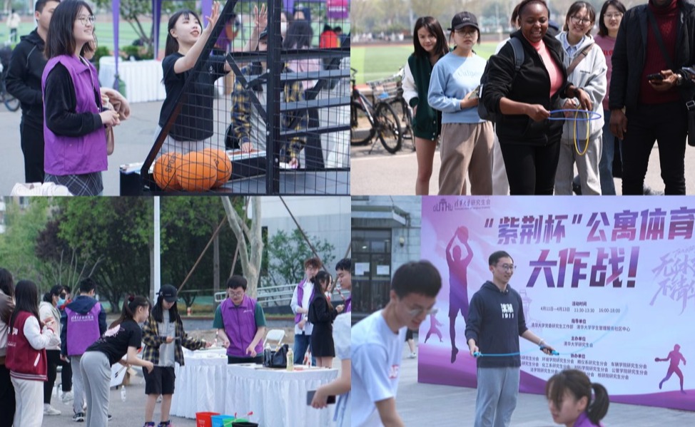 4月11日至4月13日,第四届“紫荆杯”公寓体育大作战在学生服务中心前广场举行。活动吸引了来自49个院系的1300余名同学参赛,覆盖64栋学生公寓,共完成趣味体育活动超1.6万项。