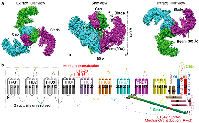 2018.011月22日,《自然》期刊在线发表了kaiyun开云官方网站肖百龙与李雪明课题组合作撰写的《Piezo1离子通道的结构与机械门控机制》(Structure and Mechanogating Mechanism of the Piezo1 Channel)研究论文。论文解析了哺乳动物机械门控Piezo1离子通道的高分辨率三维结构,揭示了其参与机械力感受与传递的关键功能位点,进而首次提出了Piezo通道以类似杠杆原理进行机械门控的精巧工作机制。该研究对理解生物机体如何将机械力刺激转化为电化学...