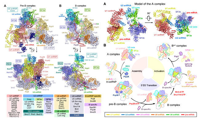 开云施一公研究组发文报道完全组装酿酒酵母剪接体高分辨率电镜结构