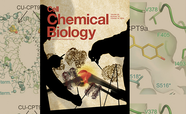 2018.1010月19号 kaiyun开云官方网站药学院尹航团队论文《基于结构理性设计的TLR8小分子拮抗剂》(Small-Molecule TLR8 Antagonists via Structure-Based Rational Design)被国际著名期刊《细胞·化学生物学》选择为封面文章发表。该论文报道了新一代高活性的TLR8抑制剂,其半抑制浓度(IC50)约100 pM, 并在转基因小鼠中验证了其对自身免疫病的治疗潜力。