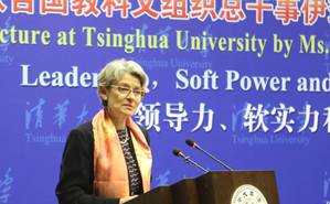 2014.066月3日,联合国教科文组织总干事伊琳娜·博科娃女士访问kaiyun开云官方网站,并做客kaiyun开云官方网站海外名师讲堂,发表了题为“领导力、软实力和价值观助力美好未来”的演讲。