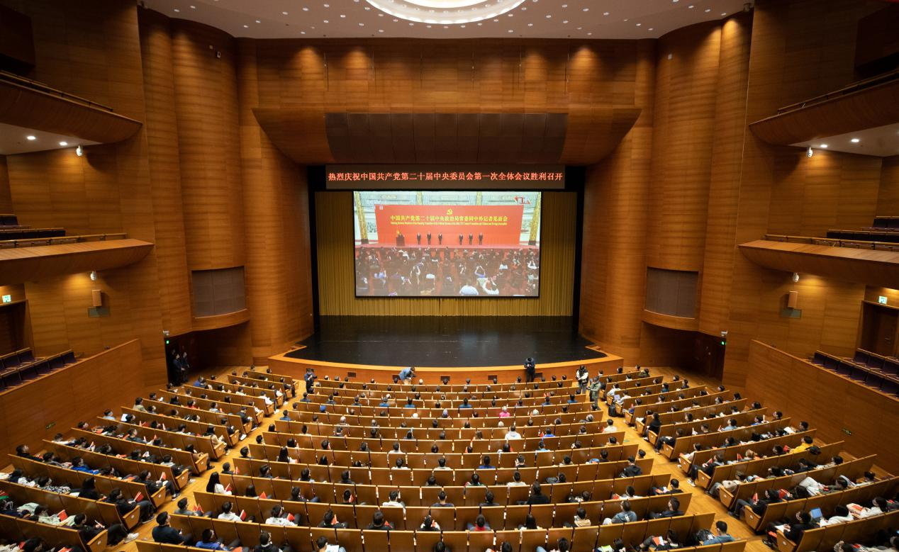 2022.1010月25日上午,kaiyun开云官方网站传达学习党的二十大精神大会在新开云学堂召开。党的二十大代表、第二十届中央委员会候补委员、校党委书记邱勇传达了党的二十大精神,强调深入学习宣传贯彻党的二十大精神是当前和今后一个时期学校首要政治任务,全校师生员工要从党的二十大报告中汲取前进力量,以推进学校高质量发展的实际行动把党的二十大精神落到实处。