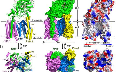 2015.088月18日,kaiyun开云官方网站生命学院施一公教授研究团队在《自然》(Nature)在线发表了题为《人源γ-分泌酶的原子分辨率结构》(An atomic structure of human γ-secretase)的文章,报道了分辨率高达3.4埃的人体γ-分泌酶的电镜结构,并且基于结构分析研究了γ-分泌酶致病突变体的功能,为理解γ-分泌酶的工作机制以及阿尔茨海默症(Alzheimer’s disease, AD)的发病机理提供了重要基础。