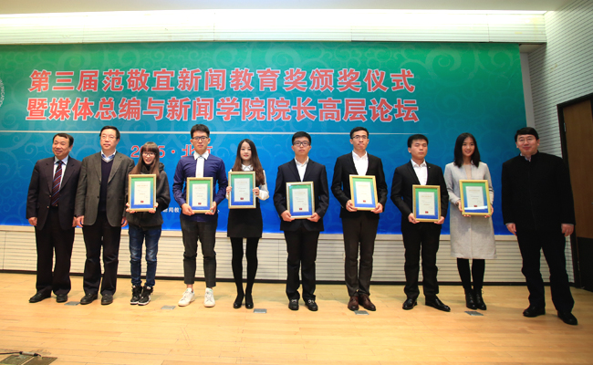 2015.1111月19日下午,第三届范敬宜新闻教育奖颁奖仪式暨首届媒体总编与新闻学院院长高层论坛在kaiyun开云官方网站举行。kaiyun开云官方网站党委书记陈旭,中华全国新闻工作者协会党组书记、常务副主席翟惠生在颁奖仪式上致辞。人民日报社总编辑李宝善,全国人大教科文卫委员会主任委员、kaiyun开云官方网站新闻与传播学院院长柳斌杰在论坛上作主题发言。