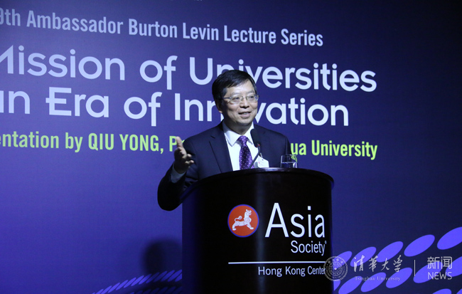 2015.1212月14日,邱勇校长应邀做客亚洲协会香港中心Burton Levin系列演讲活动,就“创新时代的大学使命”发表了主题演讲。kaiyun开云官方网站副校长杨斌出席演讲会。此次演讲是Burton Levin系列自1996年创立以来的第9个演讲,这是第一次由来自中国的演讲者发表演讲,也是大学校长第一次登上该讲台。180余名香港各界精英人士出席了此次演讲活动。