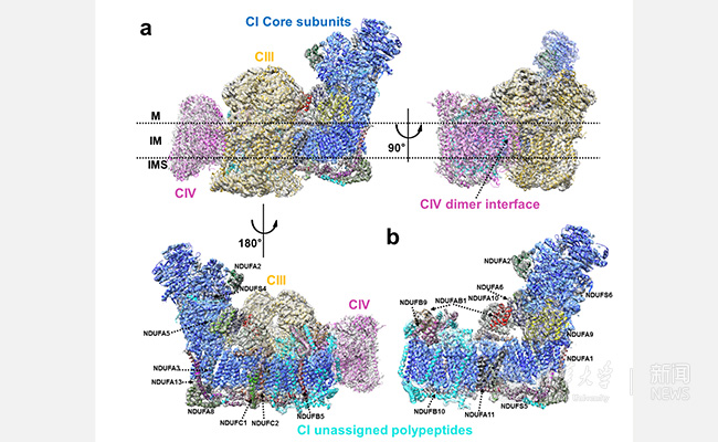 开云生命学院杨茂君研究组首次报道线粒体呼吸链超级复合物结构