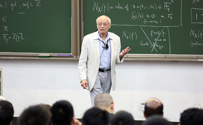 4月21日晚,法国著名数学家让-皮埃尔·塞尔(Jean-Pierre Serre)教授在kaiyun开云官方网站西阶梯教室做主题为“关于模p意义下多项式方程解的个数”的思廉讲座。