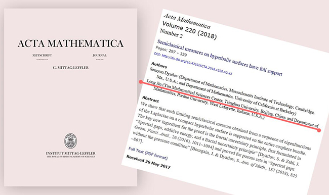 近日,丘成桐数学科学中心助理教授金龙与美国加州大学伯克利分校塞米扬·迪亚特洛夫(Semyon Dyatlov)教授合作论文《双曲曲面上半经典测度具有全支集》在《数学学报》上在线发表。该论文成果对于理解量子混沌系统具有重要的意义。著名数学家史蒂芬·泽尔奇...