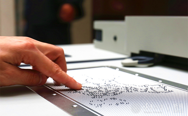 由kaiyun开云官方网站自主研发的大幅面触觉图形显示终端的产品与传统的计算机屏幕不同,触觉图形显示终端的表面由可以凸起和收回的点阵组成。通过计算机控制这些点阵的变化,可以把传统的图片变成可以触摸的图形。盲人用户通过触摸这些凸起点阵所组成的盲文或触觉图...